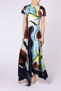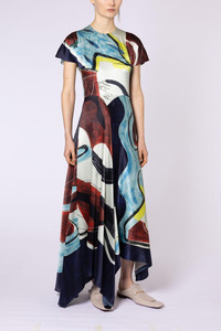 DETAILS AND INSIGHT Roksanda adriana dress in river woman multi. 70% VISCOSE 30% SILK, LINING: 73% ACETATE 27% SILK DRY CLEAN ONLY Made in Portugal Ships by Sept. 29 Style 2JZ4-H2158A-7-RVR WMN MULTI