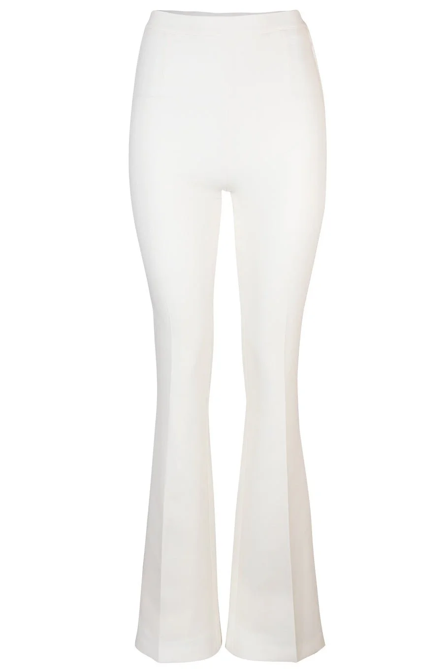 DETAILS AND INSIGHT Safiyaa alexa pant in ivory. 92% Polyester, 8% Elastane High Waisted Dry Clean Made in Turkey Style P87.1-IVORY