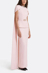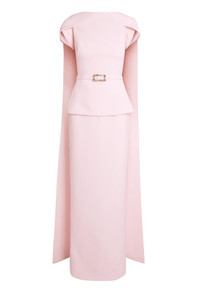DETAILS AND INSIGHT Safiyaa erkin gown in barely pink. Heavy Crepe: 92% Poly, 8% Elastane; Lining: 97% Poly, 3% Lycra; Trim: 100% Resin Dry Clean Made in Turkey Style DL1166.1+BE124.3E185-BARELYPNK