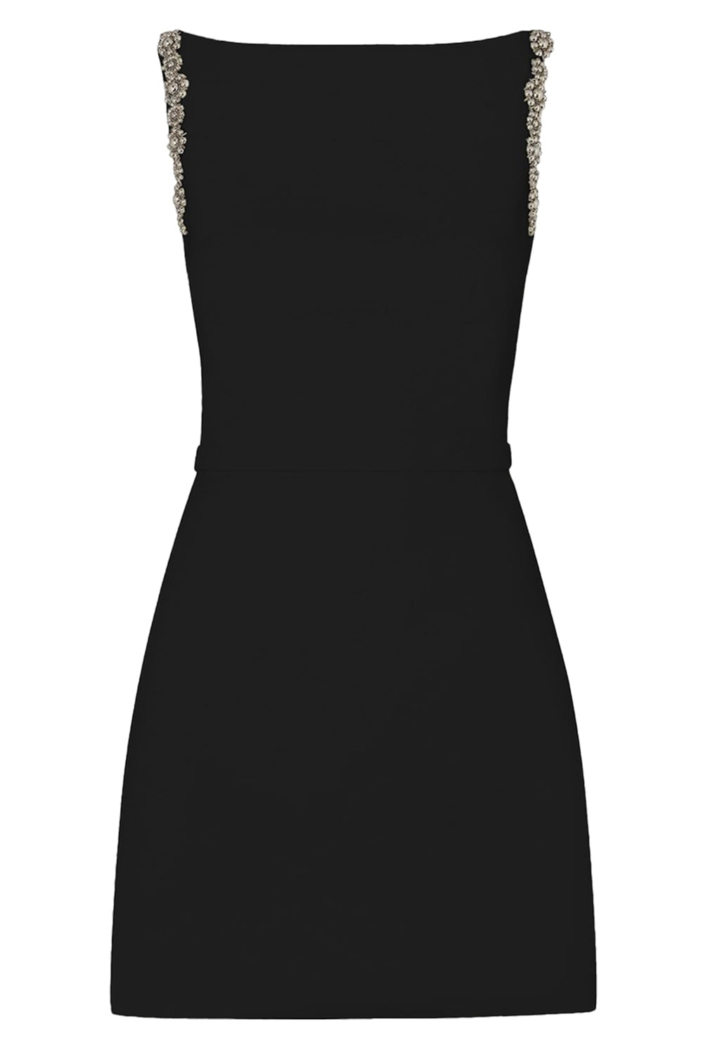 DETAILS AND INSIGHT Safiyaa grena dress in black/gunmetal. HEAVY CREPE: 92% POLYESTER, 8% ELASTANE. Dry Clean Made in TURKEY Style D1014.1E161+BE68.1-BK/GNMTL
