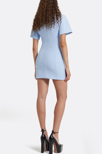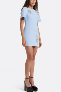 DETAILS AND INSIGHT Safiyaa lacin crystal dress in pale blue. 92% Polyester, 8% Elastan; Trim 40% Glass, 40% Brass, 20% Acrylic Dry Clean Made in Turkey Style D1136.1E185-PALE BLUE