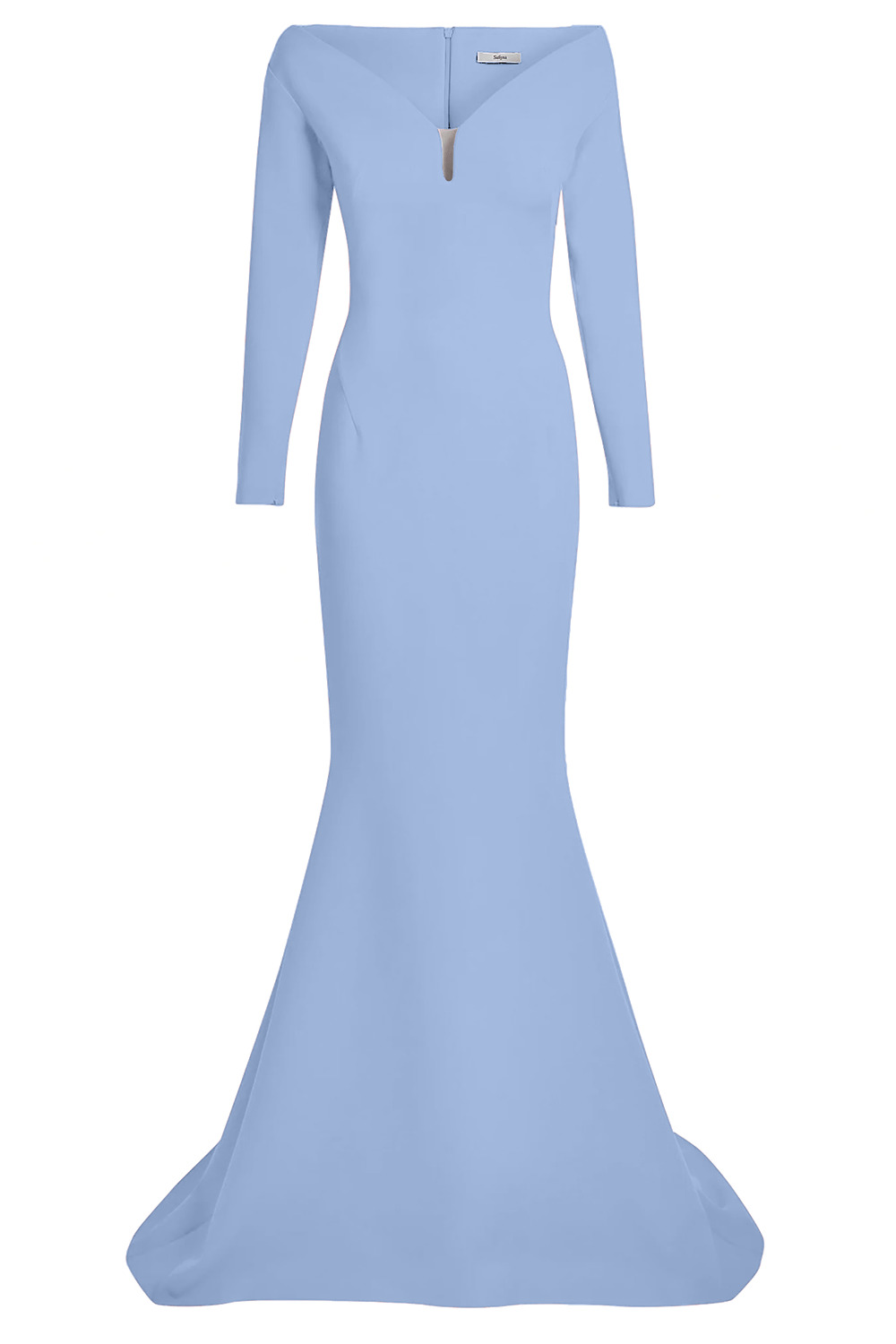 DETAILS AND INSIGHT Safiyaa wilson gown in blue ash. HEAVY CREPE, 92% POLYESTER, 8% ELASTANE Dry clean only Made in Turkey Style DL758.1-BLUE ASH