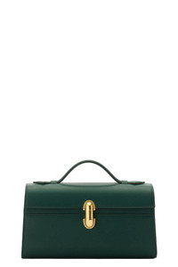 DETAILS AND INSIGHT Savette symmetry pochette bag in pine. 100% Calf Leather 9L x 5W x 3D" Fits Iphone 16 Pro Max Made In Italy Ships by Sept 22 Style H-005-01-01-302
