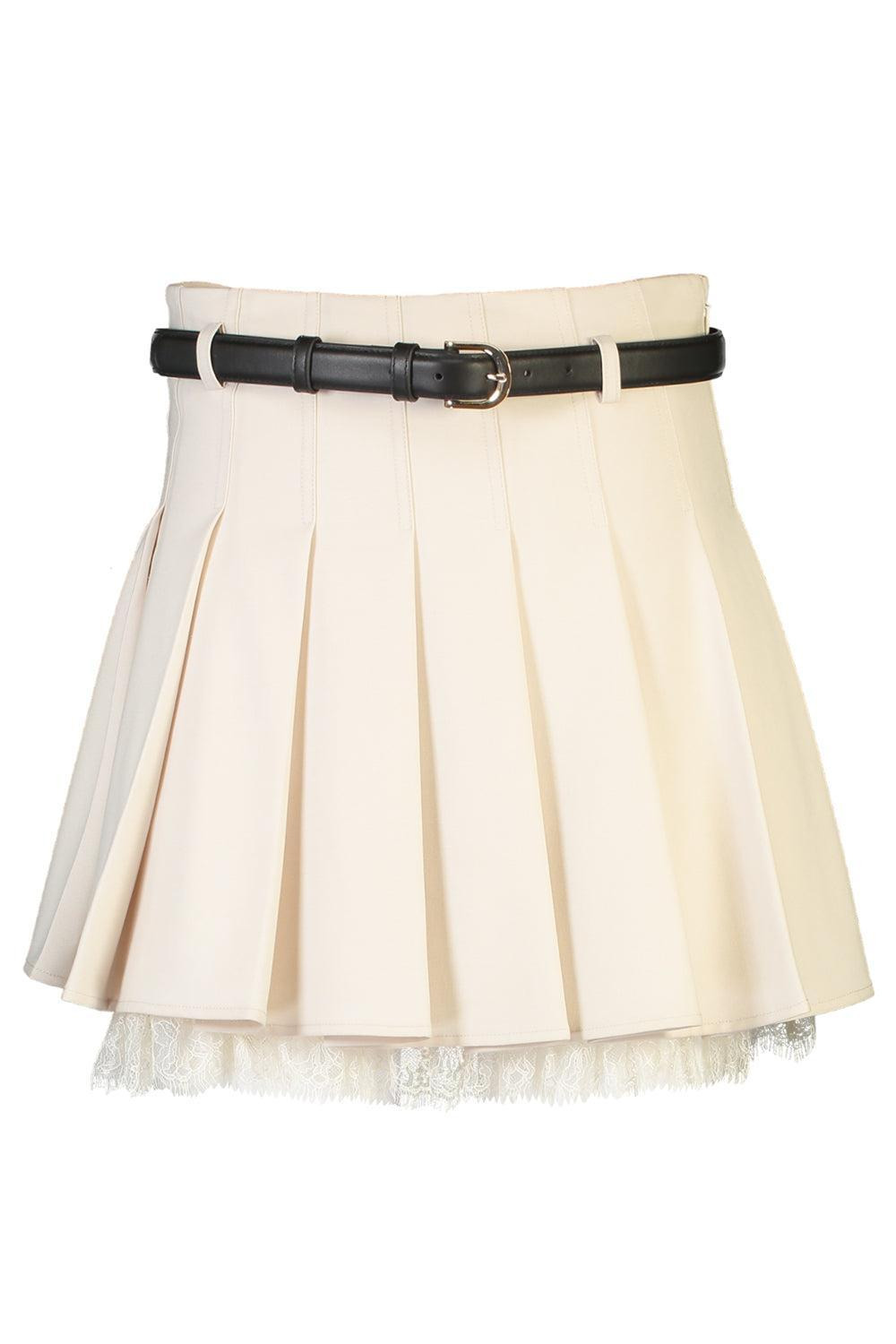 Cream Twill Pleated Mini Skirt
