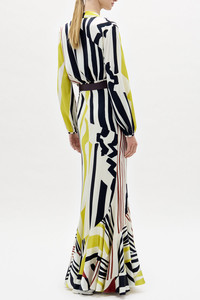 DETAILS AND INSIGHT Silvia Tcherassi florina skirt in distorted multi color stripes. 100% Viscose Dry Clean Made In Colombia Ships by Dec 27 Style ST260003-MULTI
