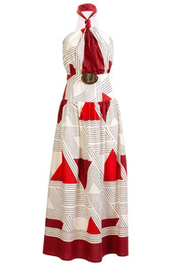 DETAILS AND INSIGHT Silvia Tcherassi lana dress in rouge geometric. 100% Cotton Dry Clean Made In Colombia Ships by Dec 27 Style ST260074-ROUGE GEOMETRIC