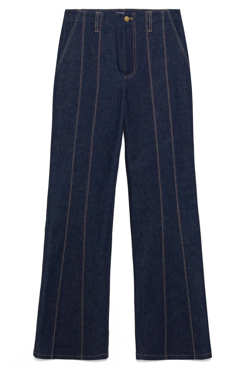 DETAILS AND INSIGHT Simkhai ansel trouser in twilight. Cotton Machine Wash Imported Ships by Sept 22 Style 525-4073-DN-TWILIGHT