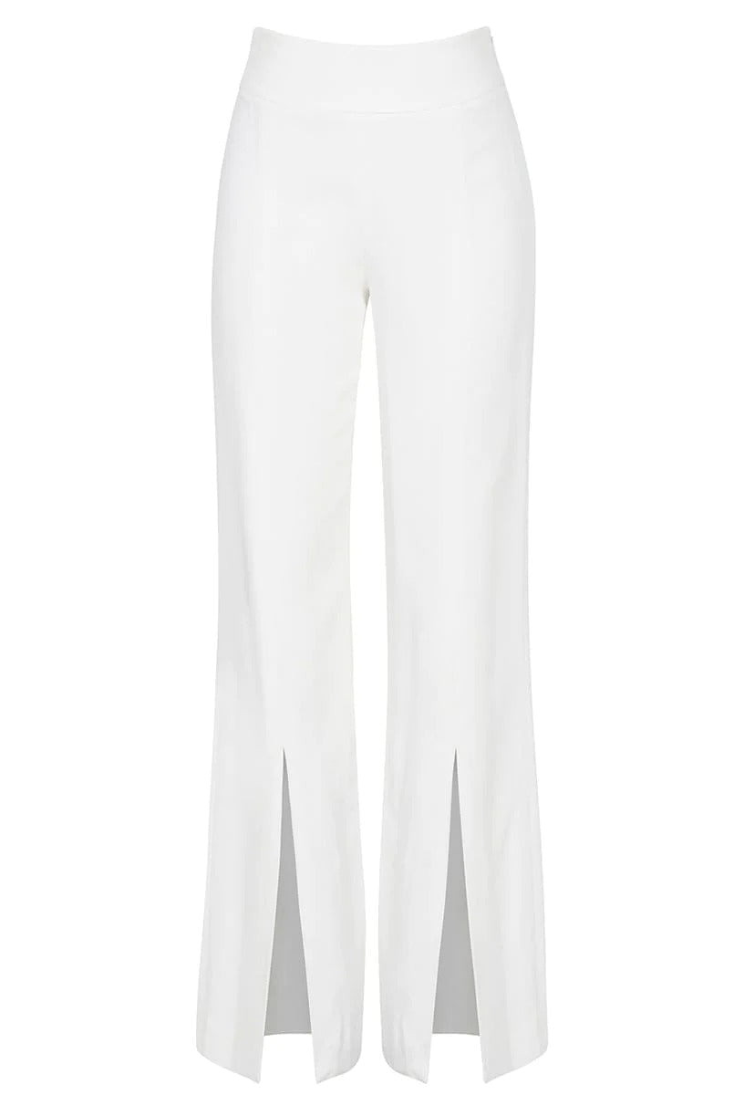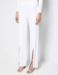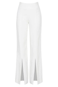 DETAILS AND INSIGHT Simkhai ariah front slit pant in white. 96% Viscose, 4% Polyester Dry Clean Made in China Style JS-4411-C