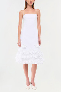 DETAILS AND INSIGHT Simkhai bella dress in white. Shell: 100% Cotton Lining: 100% Cotton Dry Clean Imported Style 225-1028-T-WHITE