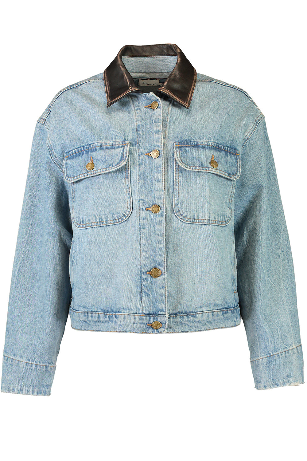 DETAILS AND INSIGHT Simkhai philoh crop jacket in coney island. Denim Dry Clean Imported Style 525-6142-DN-CONEY ISLAND