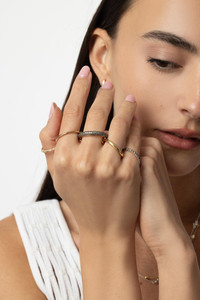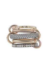 DETAILS AND INSIGHT Spinelli Kilcollin leo mx five link ring in yellow gold. 18K Yellow Gold, 18K Rose Gold, .925 Sterling Silver Cognac, Champagne, and White Diamonds 3.2ctw Style G5-LEOMX