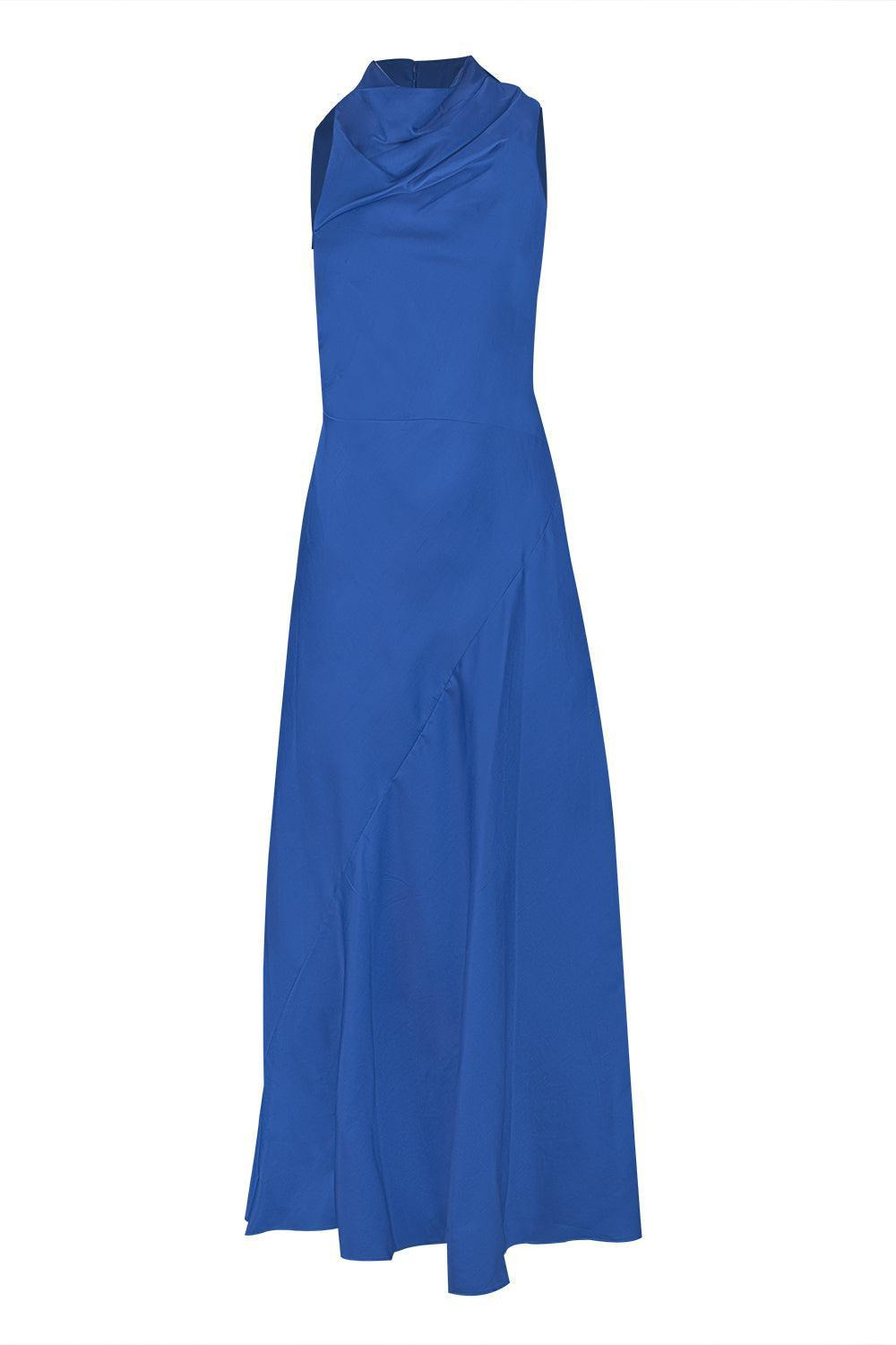 DETAILS AND INSIGHT Staud frida dress in deep sea. 100% Silk Dry Clean Made In China Style R25S2297DU-DEEP