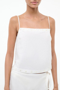DETAILS AND INSIGHT Staud kirra linen tank in ivory. 52% Linen 48% Viscose Dry Clean Made In China Style S26R1148LI-IVY