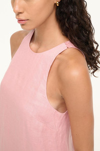 STAUD MIKA LINEN DRESS FADED BLUSH WHITE