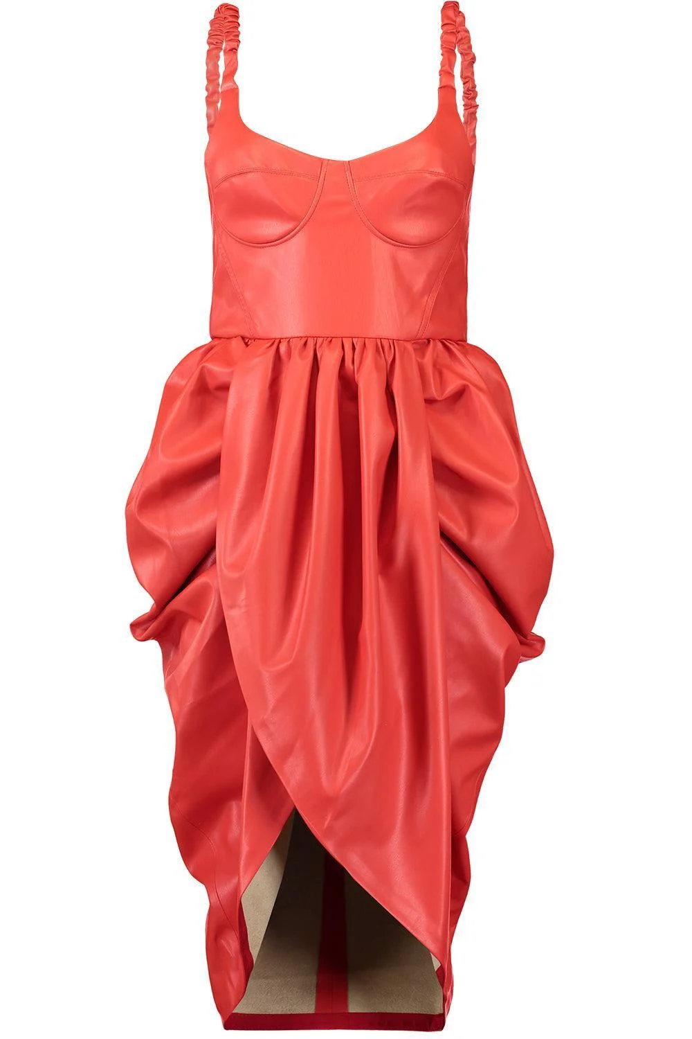 DETAILS AND INSIGHT Stella Mccartney bustier ruched wrapped dress in red. 100% Polyester Dry Clean Made In Italy Style 6A05063BU393-6309