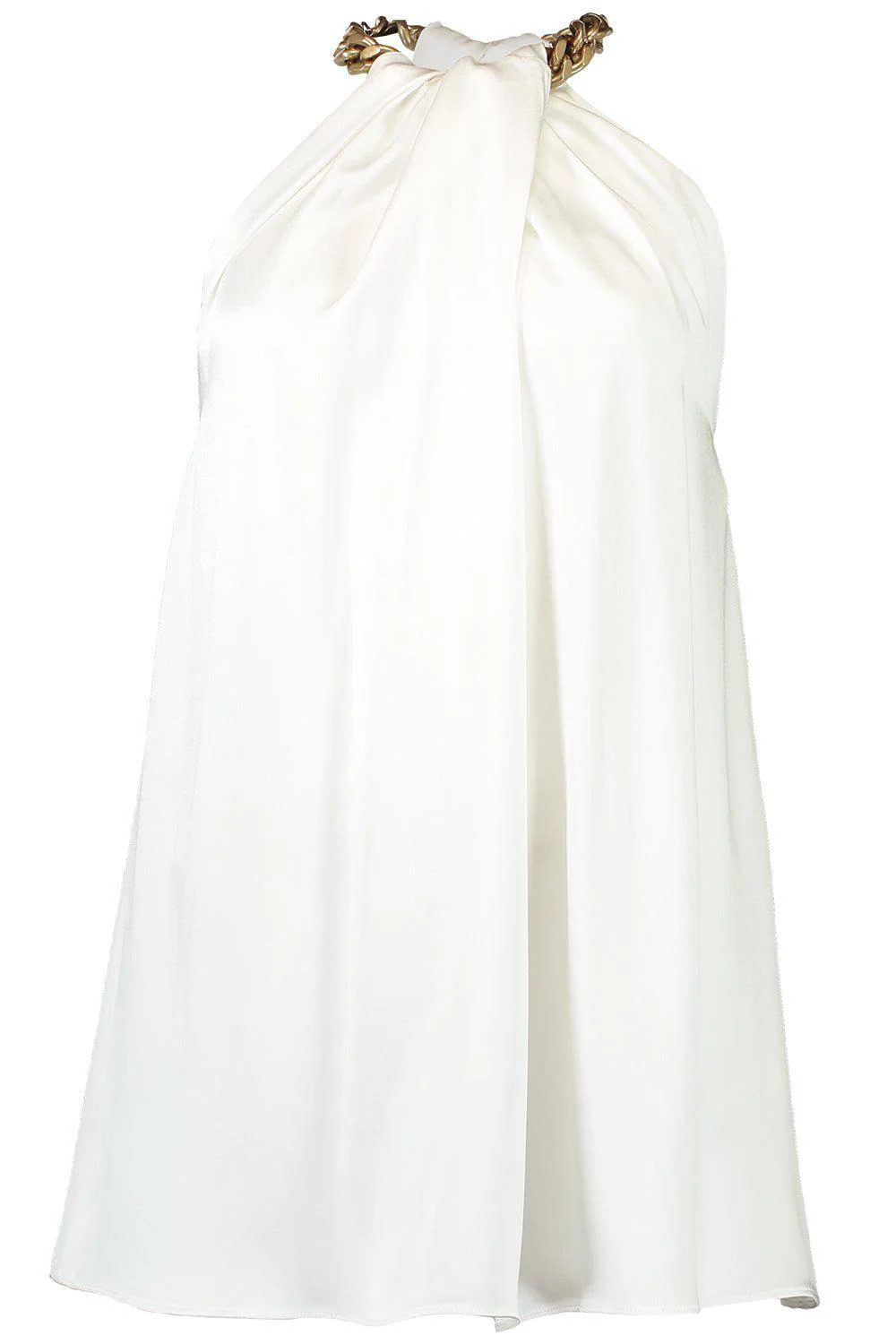 DETAILS AND INSIGHT Stella McCartney chain halterneck top in pure white. 64% acetate 36% viscose Dry Clean Made in IT Style 6T02013AU309-9500