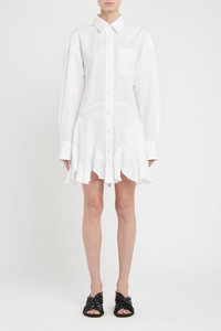 DETAILS AND INSIGHT Stella McCartney ruffled shirt dress in pure white. 100% Cotton Dry clean Made in IT Style 6A0366SMA90-9000
