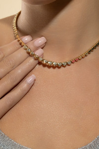 14k Yellow Gold Heart Diamond Eternity Necklace