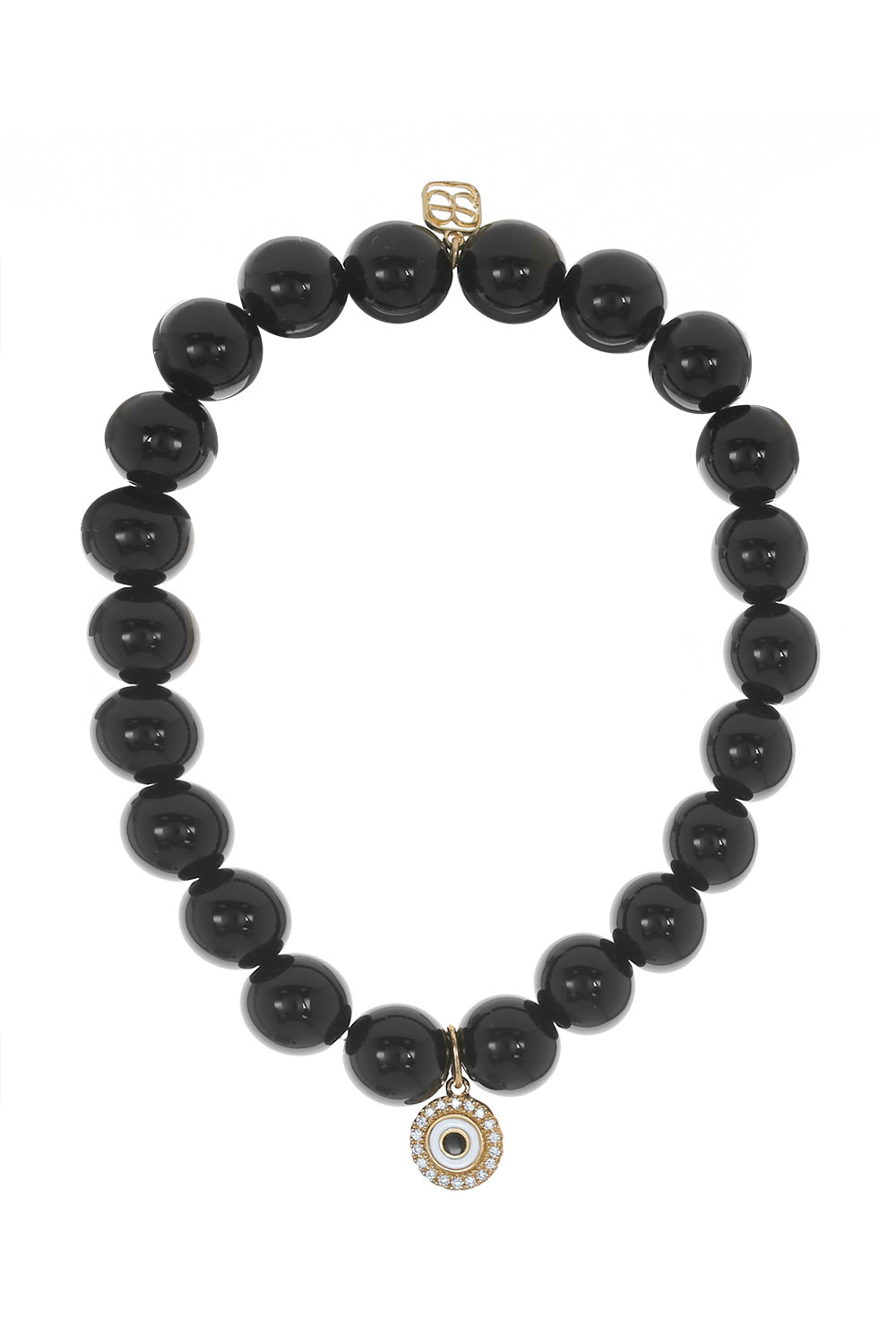 DETAILS AND INSIGHT Sydney Evan small evil eye onyx charm bracelet in yellow gold. 14K Yellow Gold, Enamel Diamonds, Onyx 8mm Style CJP1019WH-Y583.8