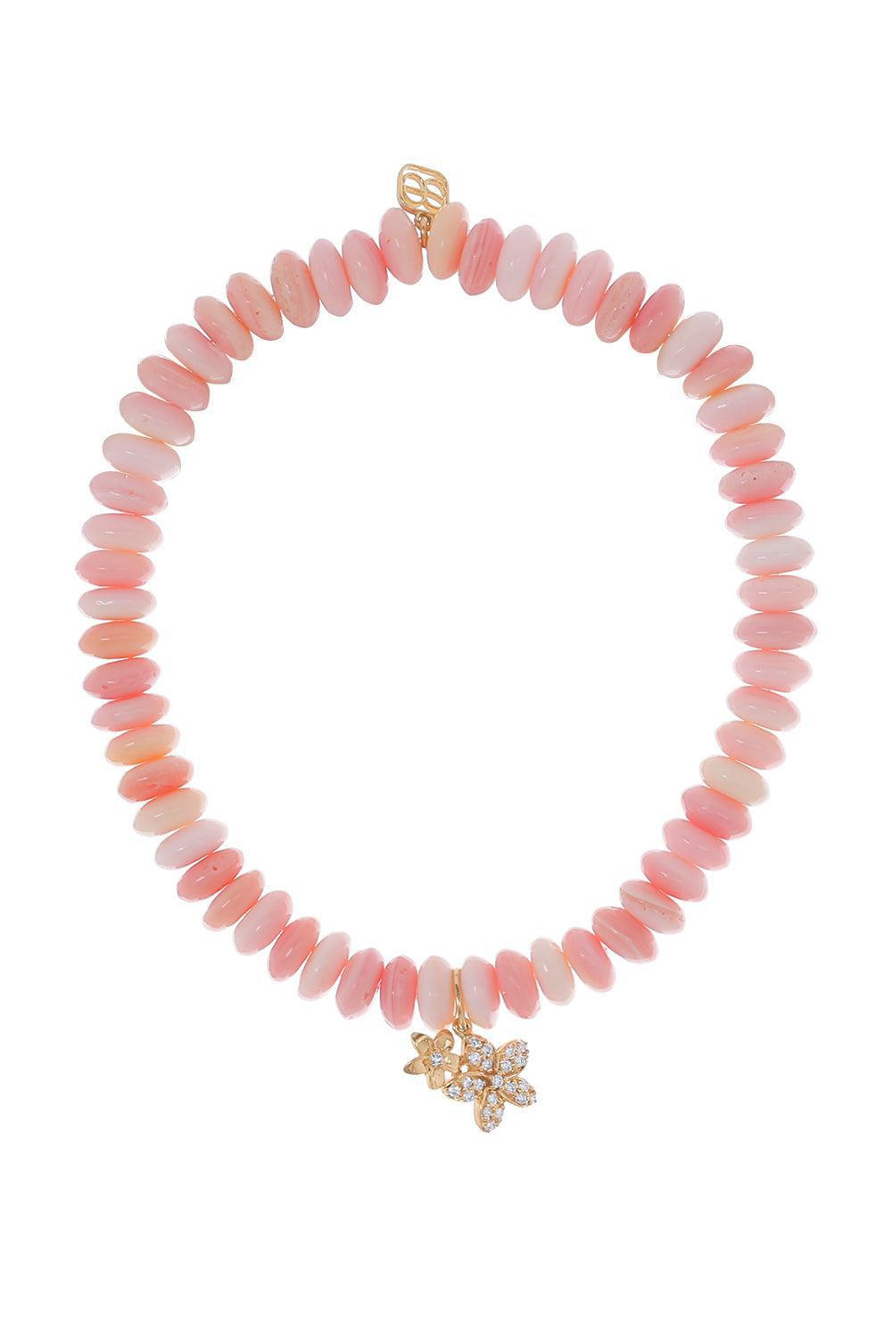 DETAILS AND INSIGHT Sydney Evan small plumeria pink conch double charm bracelet in yellow gold. 14K Yellow Gold Diamonds, Pink Conch 6mm Style CJP2975-Y808.6