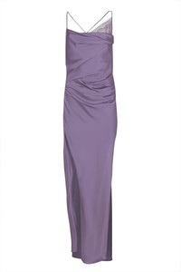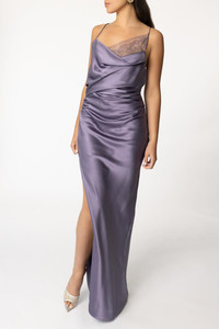 DETAILS AND INSIGHT The Sei cowl gown in smoky plum. Silk Satin Dry Clean Made In Imported Style TS9200-SMOKY PLUM