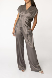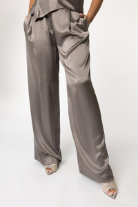 DETAILS AND INSIGHT The Sei relaxed trouser in smog. Silk Satin Dry Clean Imported Style TS6020-SMOG