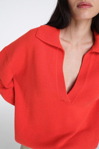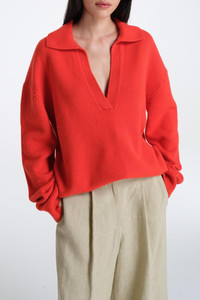 DETAILS AND INSIGHT Twp boy henley in summer tomato. 100% Cashmere Dry Clean Made In Usa None