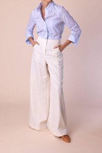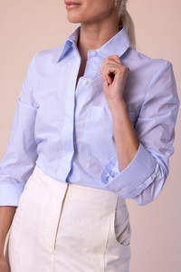 DETAILS AND INSIGHT TWP boyfriend shirt in baby blue. Cotton Dry Clean Made in USA Style C055275-W005-BYB