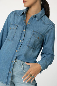 DETAILS AND INSIGHT Twp cowboy take me away shirt in vintage wash. Denim Dry Clean Made In Usa Style M550082-W416-VWS