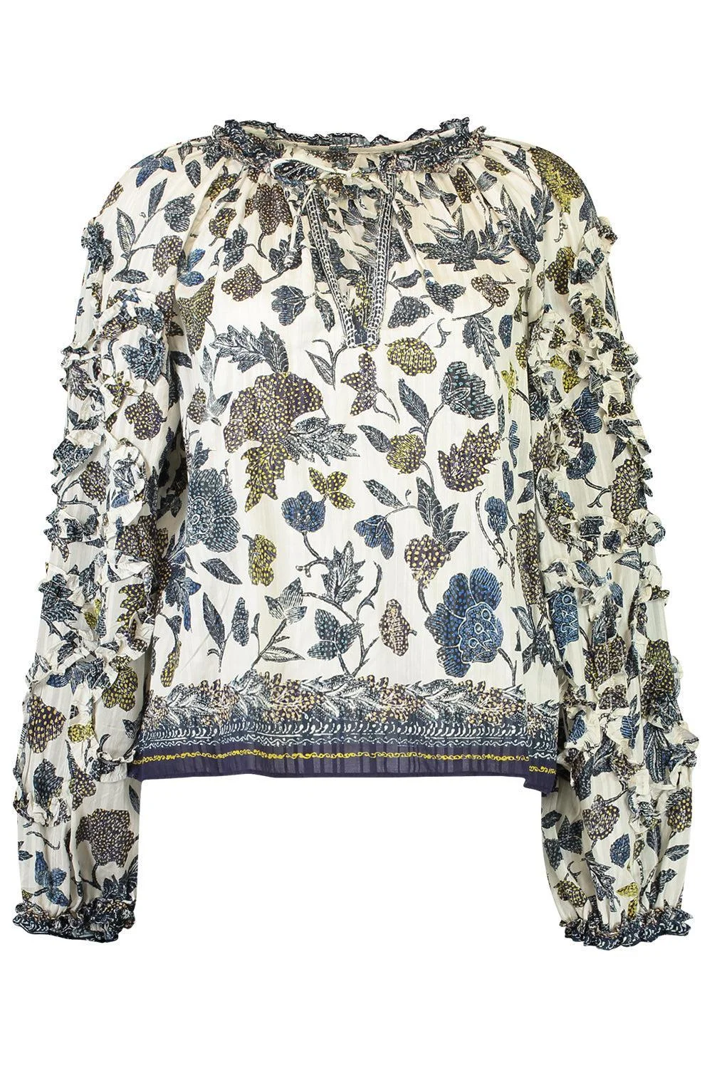 DETAILS AND INSIGHT Ulla Johnson azrou blouse in porcelain. 66% Cotton 34% Viscose Warm Gentle Machine Wash Made In India Style PS260235-PRC