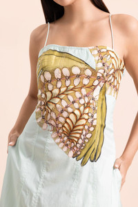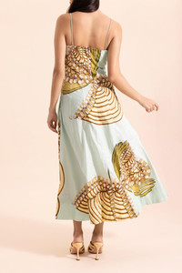 DETAILS AND INSIGHT Ulla Johnson vesela cami midi dress in water blossoms. 100% Cotton Cold Wash Made In China Style PS260157-WABLO