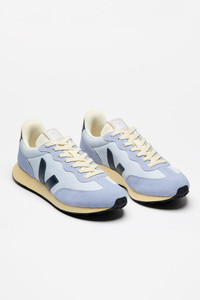 DETAILS AND INSIGHT Veja rio branco II alveomesh in swan/nautico. Upper: Alveomesh (100% recycled polyester) Panels: Suede Logo V: Amazonian rubber (26%), mineral silica (22%), synthetic rubber (21%) and others (31%) Insole: Amazonian rubber (11%), bio-based E.V.A.* (53%, including 42% sugar cane), recycled E.V.A. (11%), organic cotton (12%) and others (13%) Midsole: Amazonian rubber (11%), bio-based E.V.A.* (53%, including 42% sugarcane), recycled E.V.A.* (11%), organic cotton (12%) and others (13%) Outsole: Amazonian rubber (12%), mineral silica (30%), synthetic rubber (49%) and others (9%) Lining: Recycled polyester (100%) Laces: Organic cotton (100%) Made in Brazil Style RO1803876-SWAN/NAUTICO