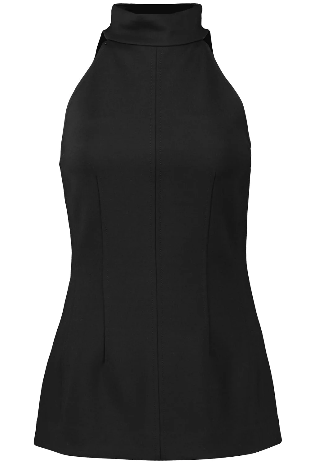 DETAILS AND INSIGHT Veronica Beard johanne top in black. 68% Viscose, 28% Polyamide, 4% Elastane Dry Clean Only Made In Usa Style 2511JY17841442-B0002