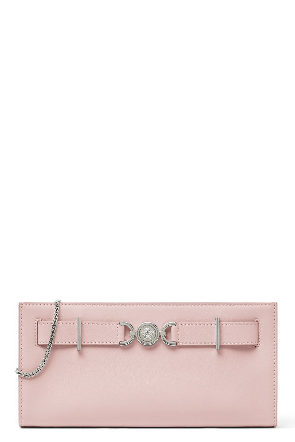 DETAILS AND INSIGHT Versace medusa '95 clutch in dusty rose\palaldium. Lining 1:100% AOS; Outside:100% VL 11" x 2.4" x 5.5" Fits Iphone 15 Pro Max Made in Italy Style 1015798-1A10795-1PT2P