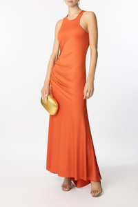 DETAILS AND INSIGHT Victoria Beckham asym tank dress in paprika. Polyester Dry Clean Imported Style 1225JDR006253A-87