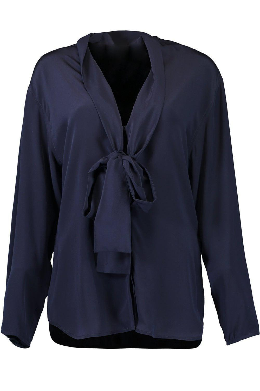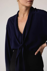 V-Neck Scarf Blouse In Ink Blue