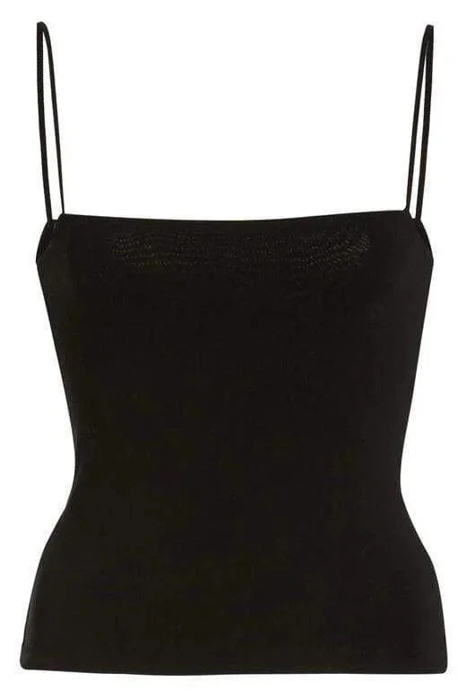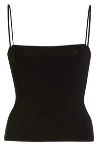 DETAILS AND INSIGHT Vince Pima Cotton Camisole in black. A close-to-the-skin Peruvian pima cotton knit features skinny straps and a crisp straight neckline. Following the form, it slips elegantly within waistbands for seamless layering. 94% Pima Cotton, 6% Spandex Made in Peru Style V736183712-001