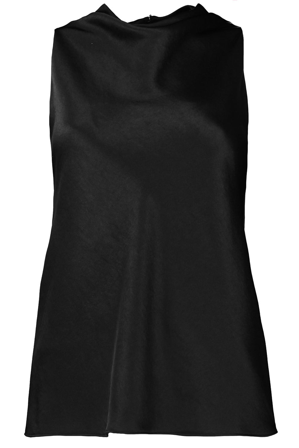 DETAILS AND INSIGHT Vince cowl neck tank in black. 45%RECYCLE POLYESTER 55% POLYESTER Machine Wash Cold Made in China Style V073413058-001BLK