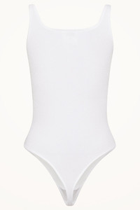 DETAILS AND INSIGHT Wolford jamaika bodysuit in white. 48% cotton, 46% nylon, 6% elastane machine wash cold gentle Imported Style 075086-1001