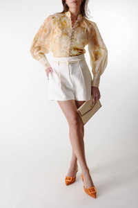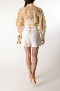 DETAILS AND INSIGHT Zimmermann crush buttoned blouse in yellow floral. 55% linen, 45% silk, cami: 86% recycled polyester, 14% elastane Dry Clean Imported Style 2339TR251-YFL