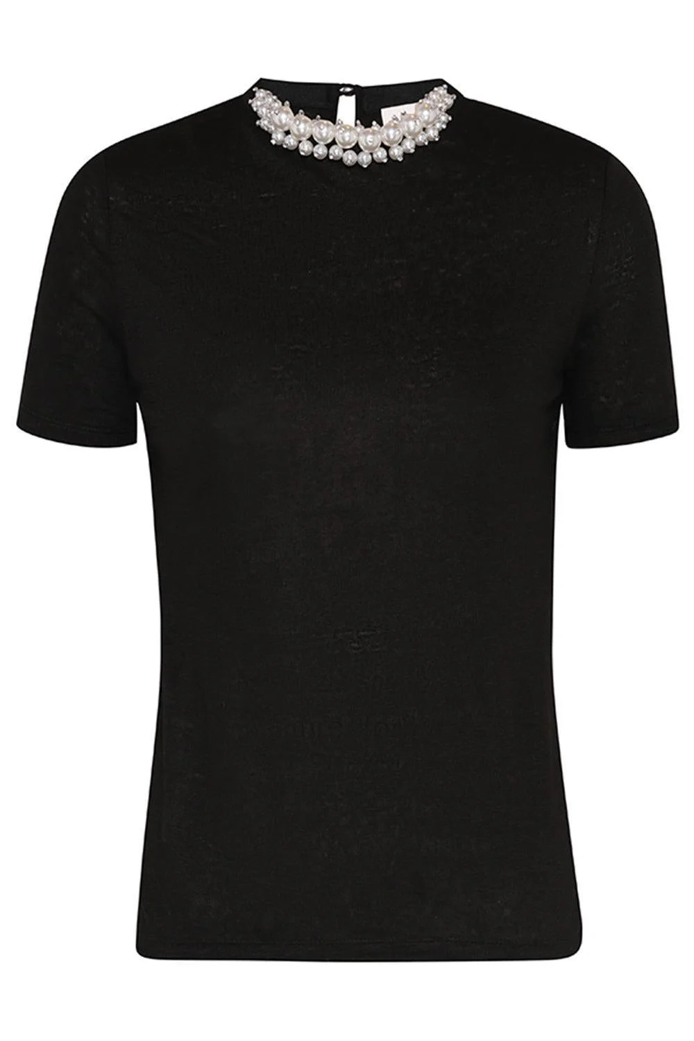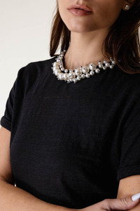 DETAILS AND INSIGHT Zimmermann crush embellished tee in ivory. 100% Linen Dry Clean Imported Style 2638TR251-BLK