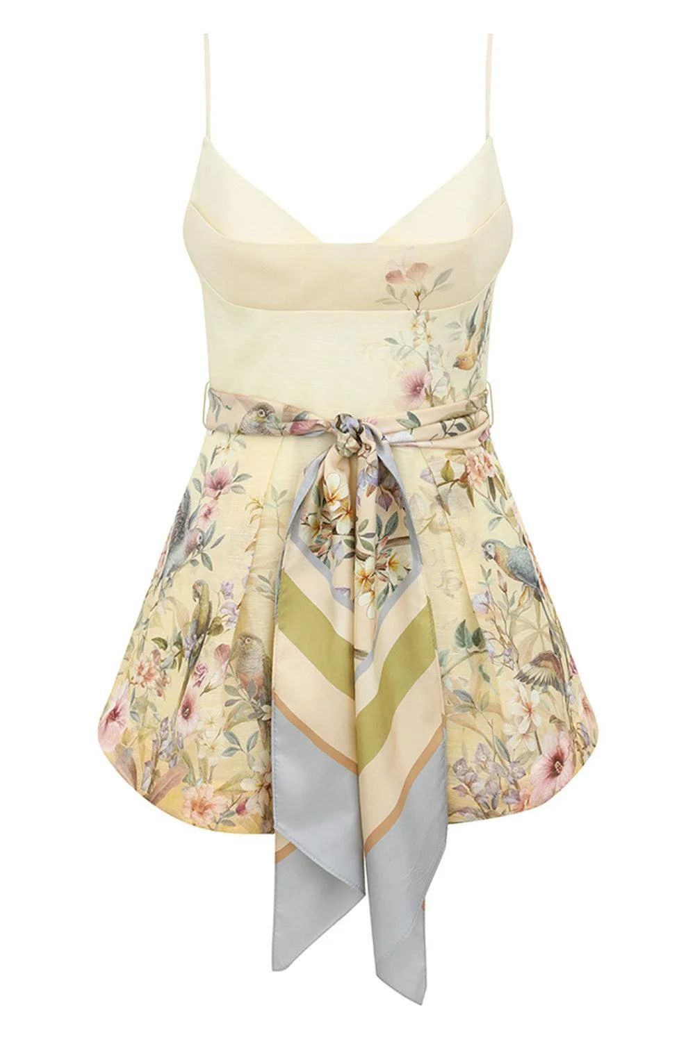 DETAILS AND INSIGHT Zimmerman rebellion fitted playsuit in lemon aviary. Removable Belt Main: 55% Linen, 45% Silk; Lining: 100% Cotton; Belt: 100% Silk Dry Clean Only Made In China Style 6538YC261-LEMA