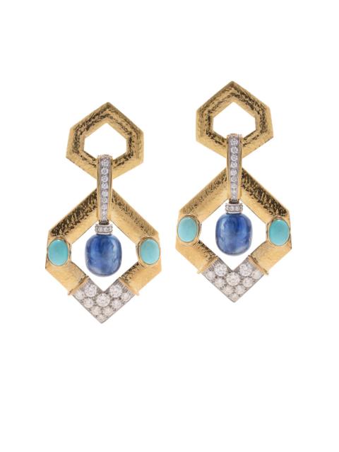 Sapphire Turquoise Diamond Hexagon Doorknocker Earrings