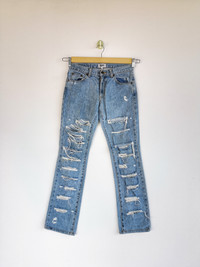 Distressed Katie Jeans Flared Denim Boot Cut Pants - BS46008. Manual Measurement (Laying Flat): 1) Waist: 28 inch. 2) Rise: 8.5 inch. 3) Hip: 18.5 inch. 4) Tight: 10 inch. 5) Outseam: 38.5 Inch. 6) Inseam: 30.5 Inch. 7) Leg Opening: 7 inch. Please check measurements to insure a proper fit. Remember to allow yourself some extra room for movement. You can compare these with something from your closet that fits you well. Condition: Good Vintage Condition. Made in JAPAN. Fabric Material: 100% Cotton. BS46008. We do combine shipping. ======================================== We're using the registered air-mail with tracking number (2-4 weeks). For DHL Express packages, please add-on $20, only take 2-5 Day for arrived. TRACKING NUMBER WILL BE GIVEN AFTER POSTAGE. Looking for serious buyer only. Make our shop as favorite as lot of stuff is yet to come! Items are open for negotiation at a reasonable price. Feel free to browse through the listing and you might find some treasure for yourself OR perhaps for your friends and family too! Do follow us for more update and new uploads! Thanks for view and have a nice day.