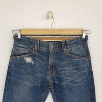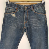 Distressed Russel Athletic Jeans Selvedge Denim Pants - BS46374. Manual Measurement (Laying Flat): 1) Waist: 32 inch. 2) Rise: 9.5 inch. 3) Hip: 21.5 inch. 4) Tight: 11.5 inch. 5) Outseam: 43 Inch. 6) Inseam: 32.5 Inch. 7) Leg Opening: 7 inch. Please check measurements to insure a proper fit. Remember to allow yourself some extra room for movement. You can compare these with something from your closet that fits you well. Condition: Good Vintage Condition. Fabric Material: 100% Cotton. BS46374. We do combine shipping. ======================================== We're using the registered air-mail with tracking number (2-4 weeks). For DHL Express packages, please add-on $20, only take 2-5 Day for arrived. TRACKING NUMBER WILL BE GIVEN AFTER POSTAGE. Looking for serious buyer only. Make our shop as favorite as lot of stuff is yet to come! Items are open for negotiation at a reasonable price. Feel free to browse through the listing and you might find some treasure for yourself OR perhaps for your friends and family too! Do follow us for more update and new uploads! Thanks for view and have a nice day.