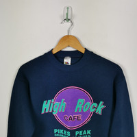 Vintage High Rock Cafe Sweatshirt Sweater alike Hard Rock Cafe | BS45859. Tag: Fruit of The Loom. Size on tag: Medium. Manual Measurement (Laying Flat): Chest Armpit to Armpit: 19 Inch. Length: 23 Inch. (Please compare this measurement with your favorite shirt.) No Edge Bone, No Stain, No Hole. Fabric Material: Duo-Blend, 48% Polyester / 52% Cotton. In good Condition overall. BS45859. We do combine shipping. ======================================== We're using the registered air-mail with tracking number (2-4 weeks). For DHL Express packages, please add-on $20, only take 2-5 Day for arrived. TRACKING NUMBER WILL BE GIVEN AFTER POSTAGE. Looking for serious buyer only. Make our shop as favorite as lot of stuff is yet to come! Items are open for negotiation at a reasonable price. Feel free to browse through the listing and you might find some treasure for yourself OR perhaps for your friends and family too! Do follow us for more update and new uploads! Thanks for view and have a nice day.