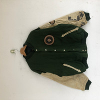 Vintage Highland Varsity Jackets Letterman Leather Wool Jacket - BS60060. Manual Measurement (laying in flat area): 1) Chest: 25 inch. 2) Length: 24.5 inch. 3) Shoulder: 23 inch. 4) Sleeve: 22 inch. Fabric Material: 100% Wool. Condition: In good vintage condition overall. Please check all the measurement to ensure a proper fit. Remember to allow yourself some extra room for movement. You can compare these information with your favourite jacket too. BS60060. We do combining shipping. ======================================== We're using the registered air-mail with tracking number (2-4 weeks). For DHL Express packages, please add-on $20, only take 2-5 Day for arrived. TRACKING NUMBER WILL BE GIVEN AFTER POSTAGE. Looking for serious buyer only. Make our shop as favorite as lot of stuff is yet to come! Items are open for negotiation at a reasonable price. Feel free to browse through the listing and you might find some treasure for yourself OR perhaps for your friends and family too! Do follow us for more update and new uploads! Thanks for view and have a nice day.