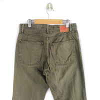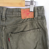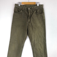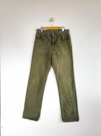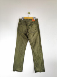 Japanese Brand Jeans Pants Olive Green Denim Pants - BS46234. Manual Measurement (Laying Flat): 1) Waist: 27 inch. 2) Rise: 10.5 inch. 3) Hip: 18.5 inch. 4) Tight: 10.5 inch. 5) Outseam: 40.5 Inch. 6) Inseam: 31 Inch. 7) Leg Opening: 8 inch. Please check measurements to insure a proper fit. Remember to allow yourself some extra room for movement. You can compare these with something from your closet that fits you well. Condition: Good Vintage Condition. Made in JAPAN. Fabric Material: 100% Cotton. BS46234. We do combine shipping. ======================================== We're using the registered air-mail with tracking number (2-4 weeks). For DHL Express packages, please add-on $20, only take 2-5 Day for arrived. TRACKING NUMBER WILL BE GIVEN AFTER POSTAGE. Looking for serious buyer only. Make our shop as favorite as lot of stuff is yet to come! Items are open for negotiation at a reasonable price. Feel free to browse through the listing and you might find some treasure for yourself OR perhaps for your friends and family too! Do follow us for more update and new uploads! Thanks for view and have a nice day.
