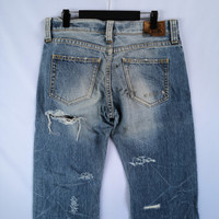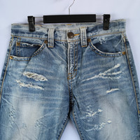 Japanese Pants Distressed Denim Jeans Grunge - BS47339. Manual Measurement (Laying Flat): 1) Waist: 32 Inch. 2) Rise: 10.5 Inch. 3) Hip: 41 Inch. 4) Tight: 23 Inch. 5) Outseam: 39.5 Inch. 6) Inseam: 28 Inch. Please check measurements to insure a proper fit. Remember to allow yourself some extra room for movement. You can compare these with something from your closet that fits you well. Condition: Good Vintage Condition Fabric Material: 100% Cotton BS47339. We do combine shipping. ======================================== We're using the registered air-mail with tracking number (2-4 weeks). For DHL Express packages, please add-on $20, only take 2-5 Day for arrived. TRACKING NUMBER WILL BE GIVEN AFTER POSTAGE. Looking for serious buyer only. Make our shop as favorite as lot of stuff is yet to come! Items are open for negotiation at a reasonable price. Feel free to browse through the listing and you might find some treasure for yourself OR perhaps for your friends and family too! Do follow us for more update and new uploads! Thanks for view and have a nice day.