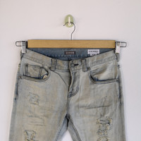 Rusty Bayflow Denim Japanese Distressed Jeans Skinny Pants - BS46009. Manual Measurement (Laying Flat): 1) Waist: 30 inch. 2) Rise: 9 inch. 3) Hip: 19 inch. 4) Tight: 9.5 inch. 5) Outseam: 39.5 Inch. 6) Inseam: 29.5 Inch. 7) Leg Opening: 5.5 inch. Please check measurements to insure a proper fit. Remember to allow yourself some extra room for movement. You can compare these with something from your closet that fits you well. Condition: Good Vintage Condition. Fabric Material: 100% Cotton. BS46009. We do combine shipping. ======================================== We're using the registered air-mail with tracking number (2-4 weeks). For DHL Express packages, please add-on $20, only take 2-5 Day for arrived. TRACKING NUMBER WILL BE GIVEN AFTER POSTAGE. Looking for serious buyer only. Make our shop as favorite as lot of stuff is yet to come! Items are open for negotiation at a reasonable price. Feel free to browse through the listing and you might find some treasure for yourself OR perhaps for your friends and family too! Do follow us for more update and new uploads! Thanks for view and have a nice day.